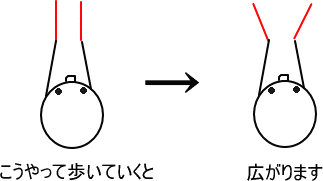 やりかたは、L字型の2本の金属棒を手に持ってゆっくり歩いていきます。