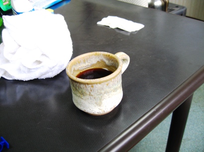 陶器用洗剤をかけ、硬いスポンジで根性入れて擦るべし!