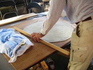 会社のミーティングルームのでかいテーブルでは、会社の年末恒例蕎麦打ちをやっています。