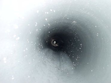 パイプの中を覗いて見た物。当たり前ですが真っ暗で何も見えません。